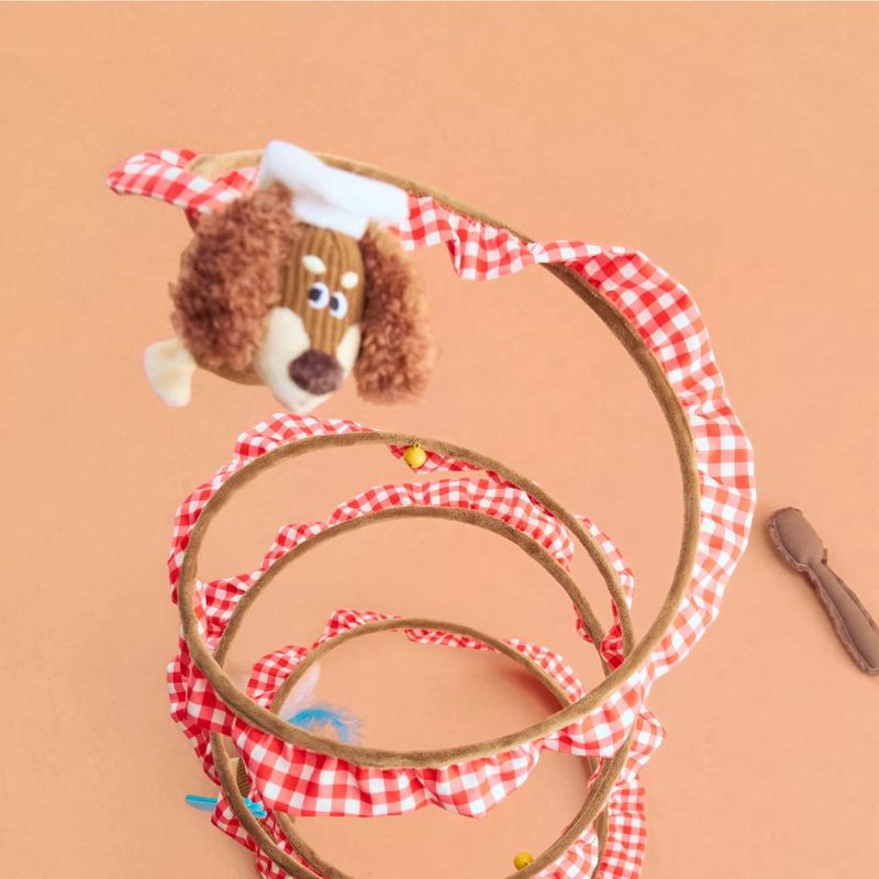 This cat tunnel toy is designed for cats to crawl through, hide, and explore, encouraging active play indoors.
