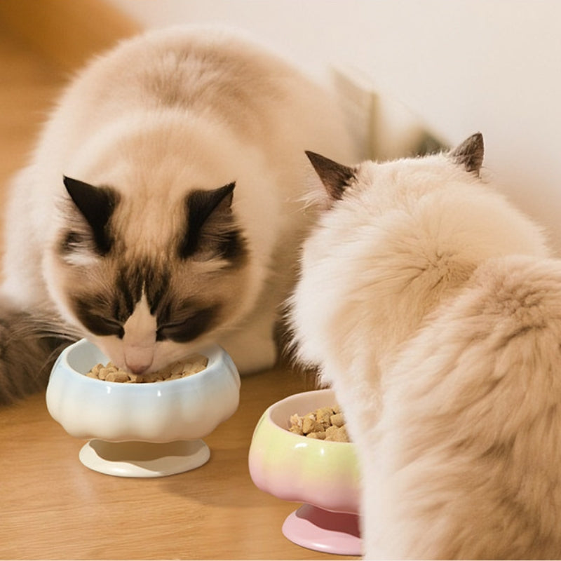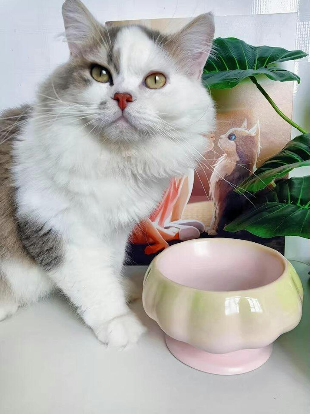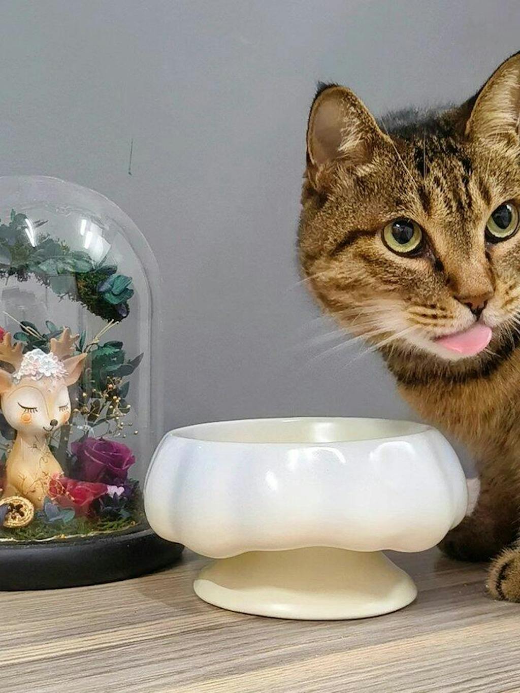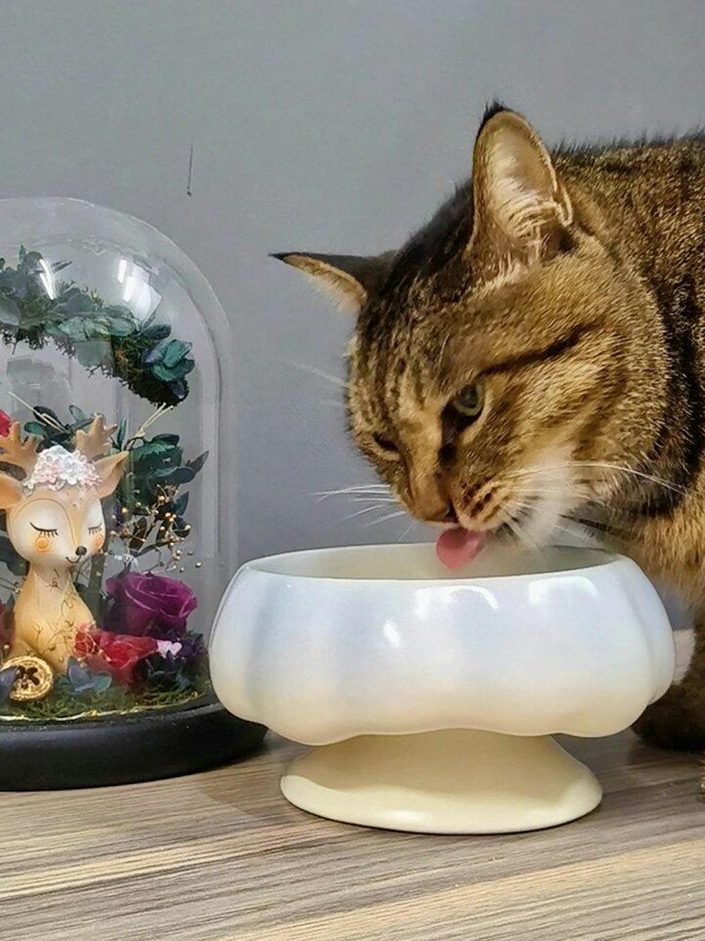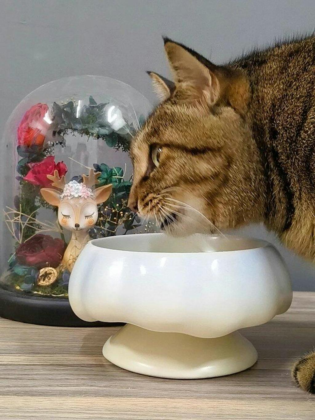 This ceramic cat bowl features a tilted design that helps cats maintain a more natural eating and drinking angle, reducing neck strain during daily use.