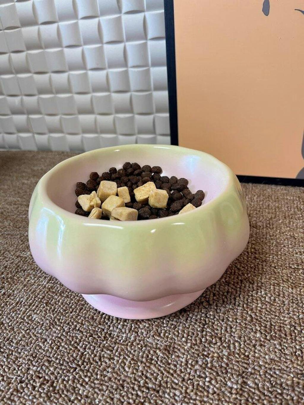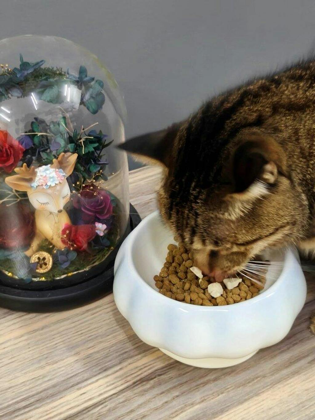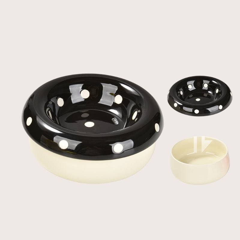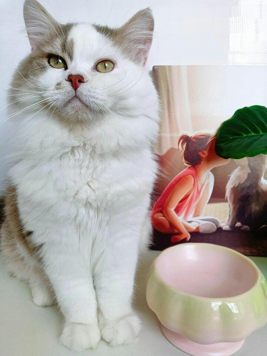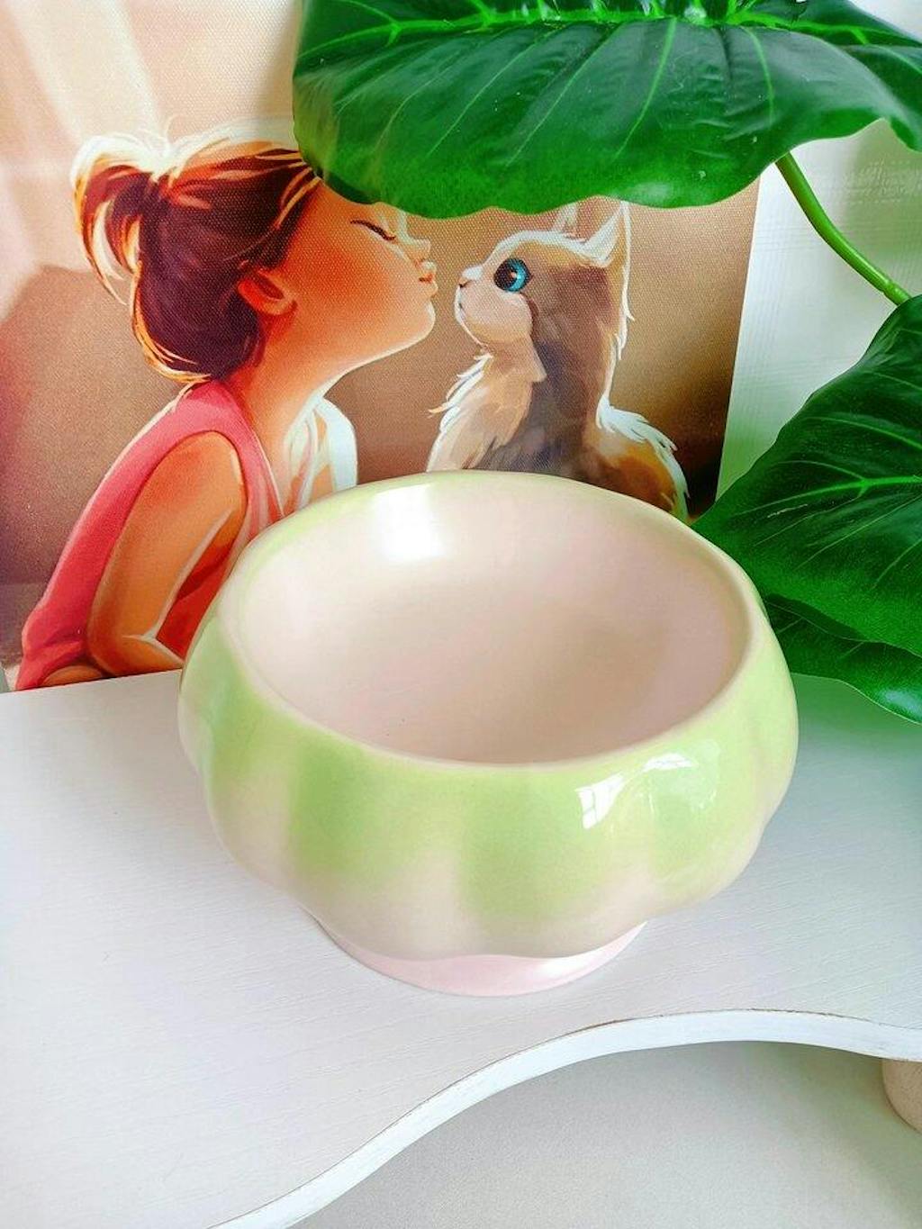 This ceramic cat bowl features a tilted design that helps cats maintain a more natural eating and drinking angle, reducing neck strain during daily use.