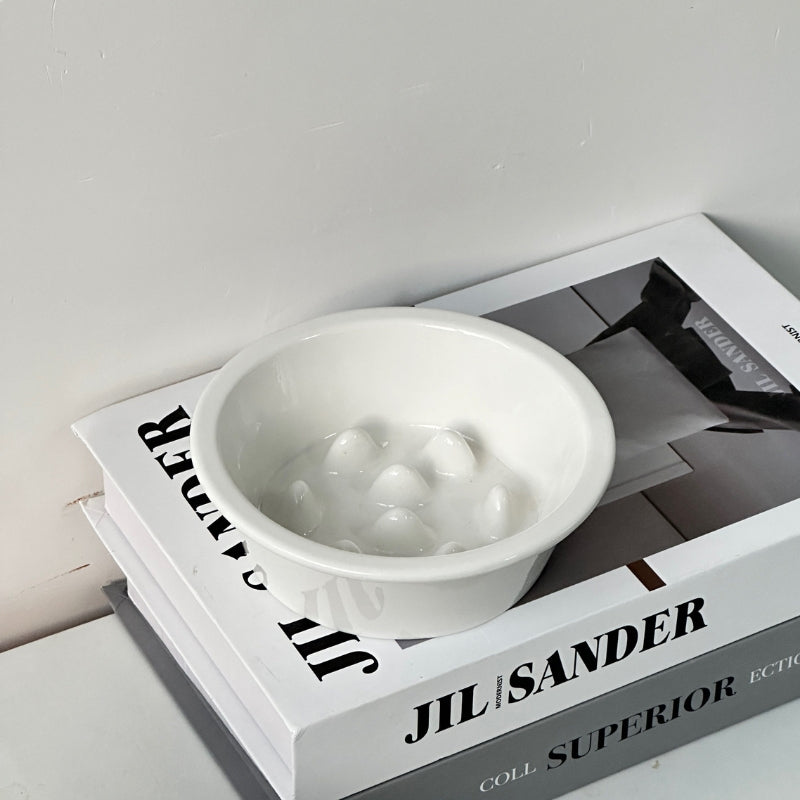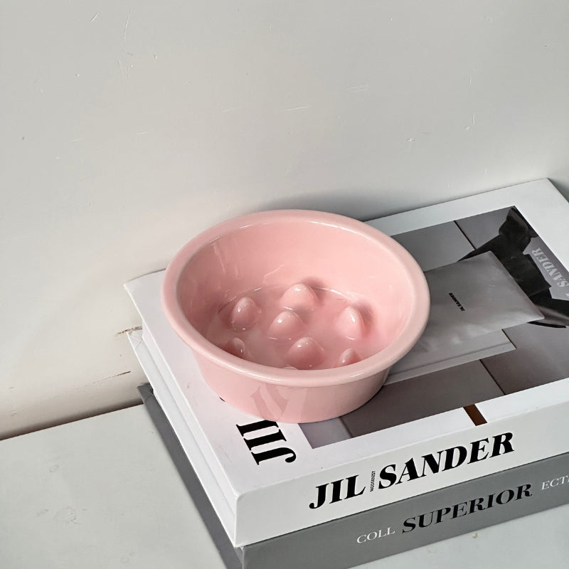 The slow-feeding structure inside the bowl helps slow down eating speed, supporting healthier digestion and reducing the risk of choking caused by fast eating.