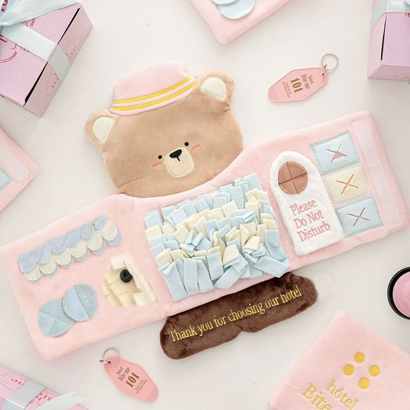 Treats or dry food can be hidden within the fabric layers, allowing dogs to complete meals through nose work and enrichment play.