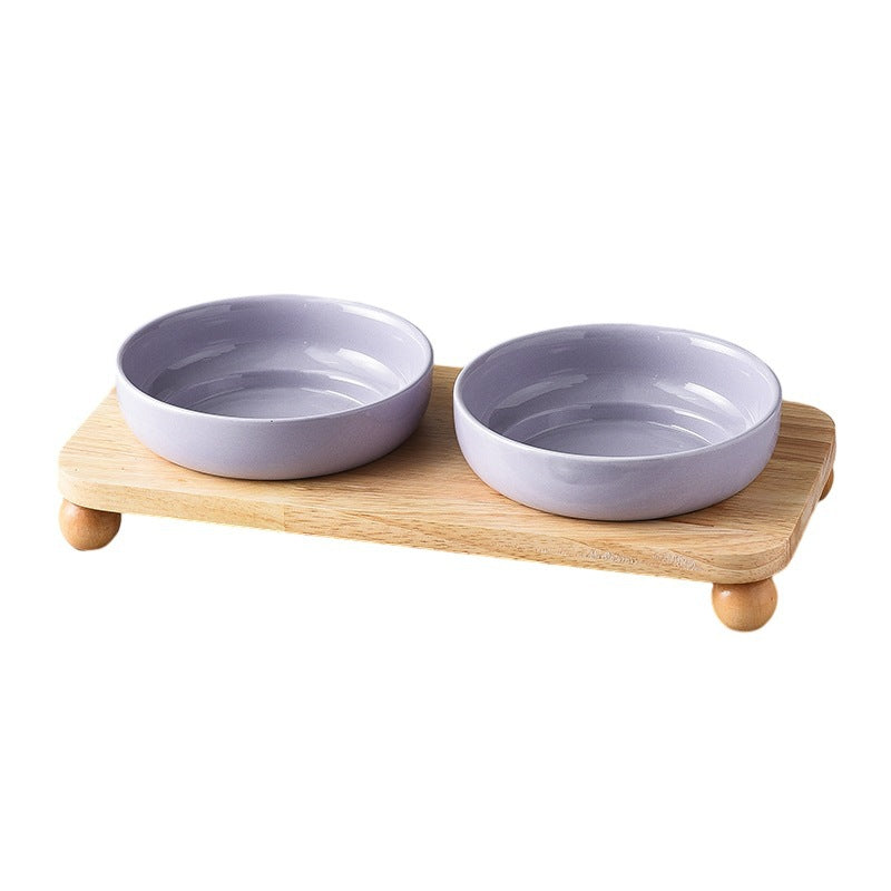Elevated Ceramic Pet Bowl with Wooden Stand for Cats & Small Dogs – Wide Mouth Design