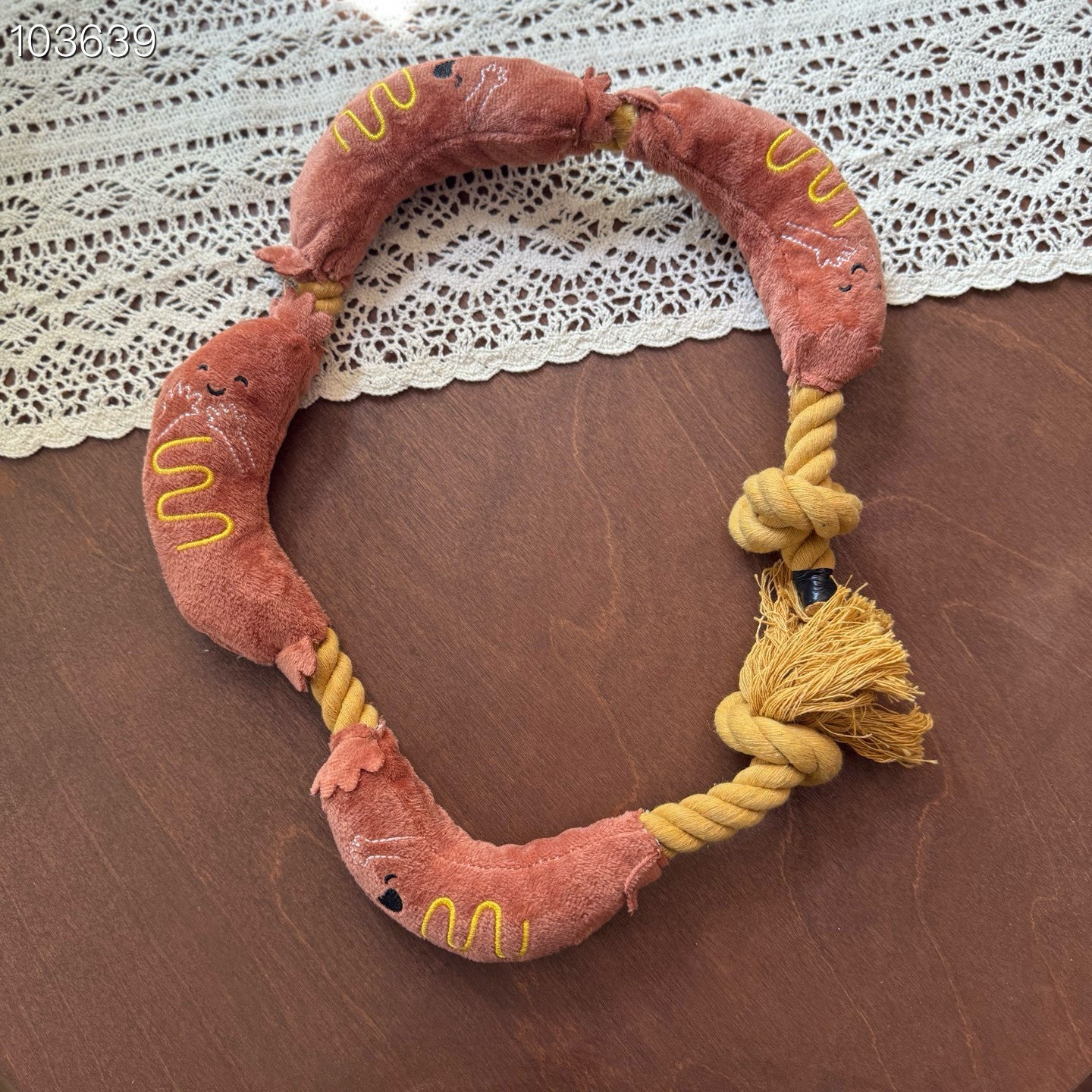 A built-in squeaker produces sound during pulling or biting, adding engagement to playtime.
