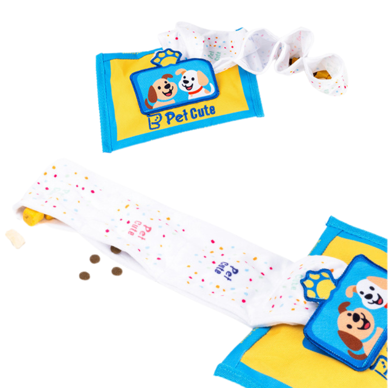 This Pull-Out Treat Puzzle Toy encourages pets to sniff, pull, and explore in order to find hidden treats or kibble inside.