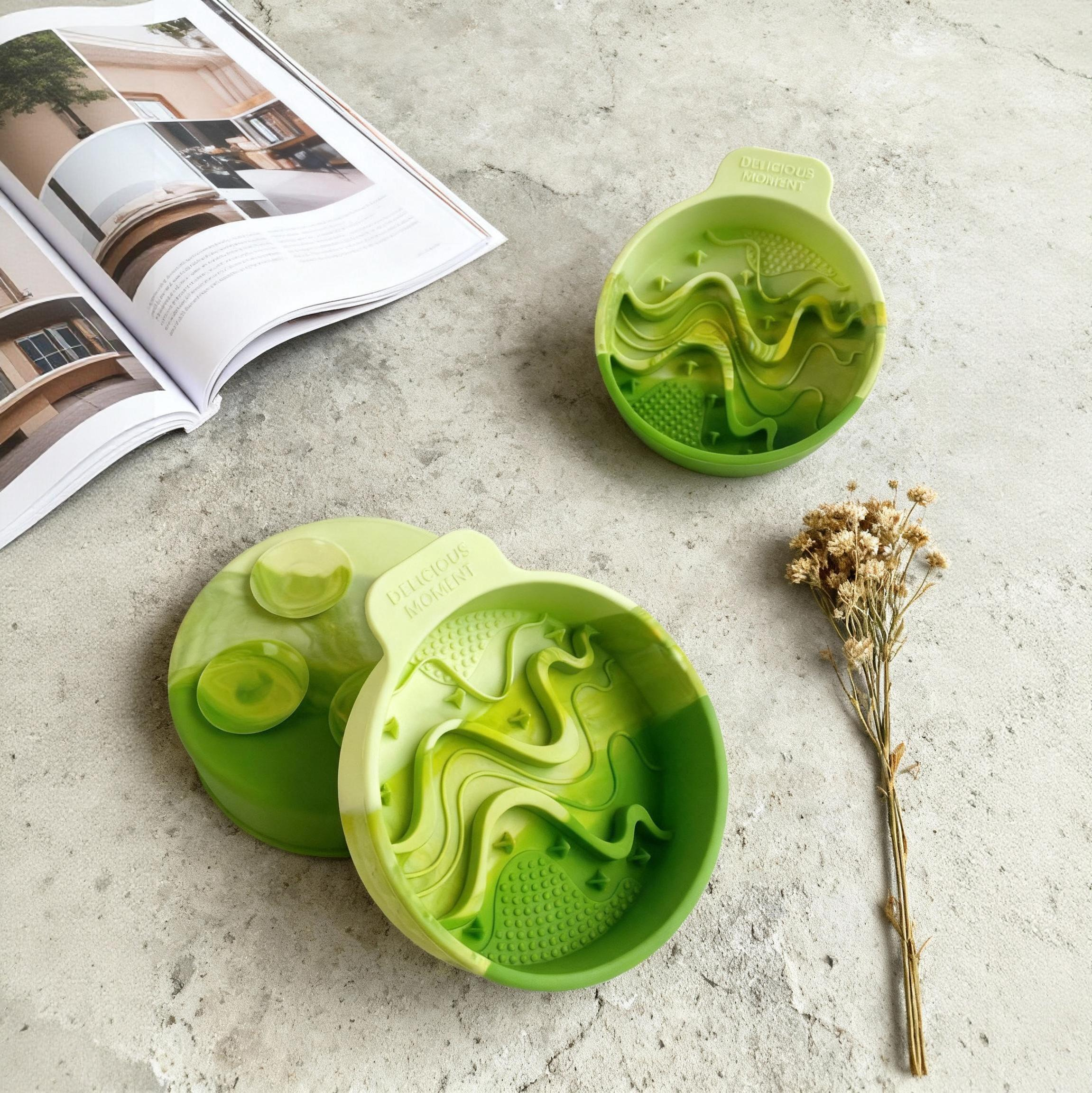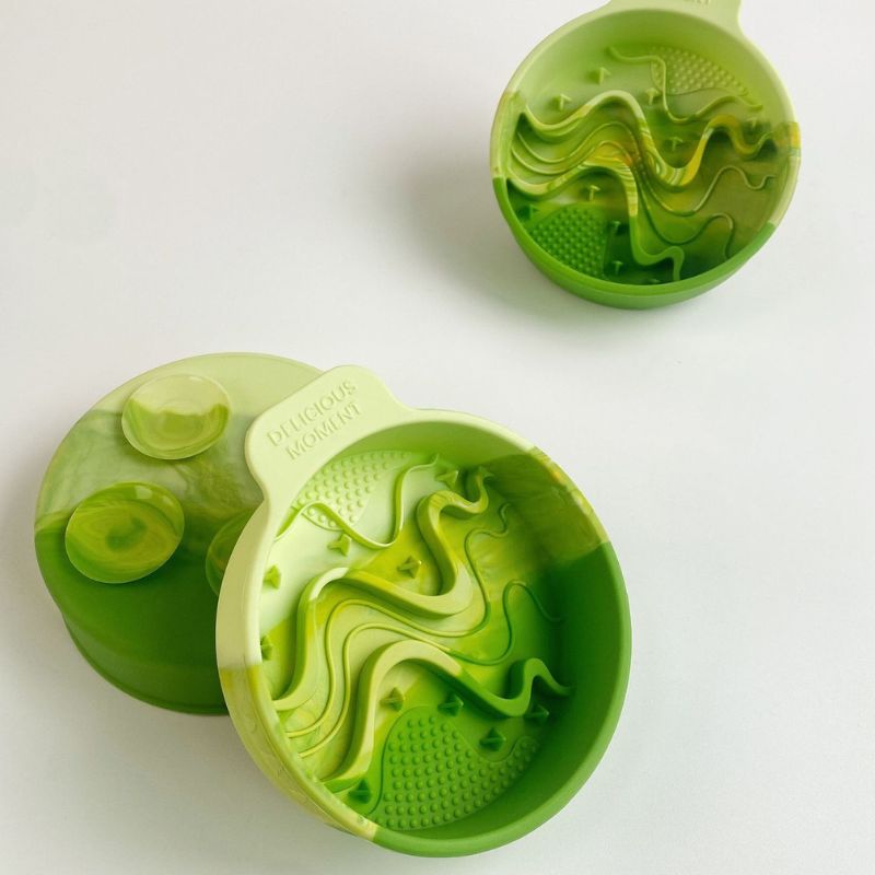 This silicone slow feeder plate is designed for cats and small dogs and can be used as both a daily slow feeder and a lick mat for enrichment.